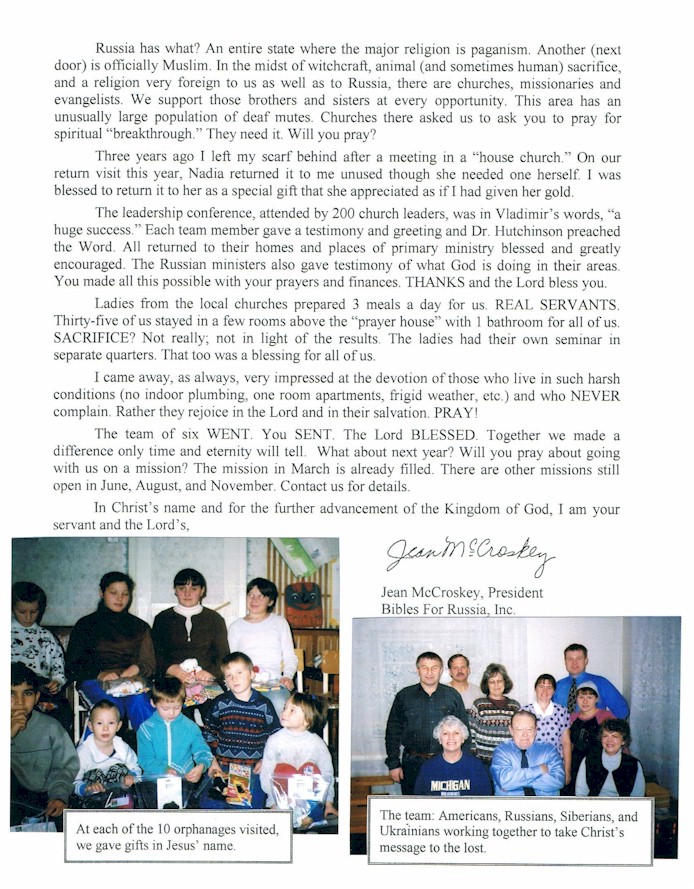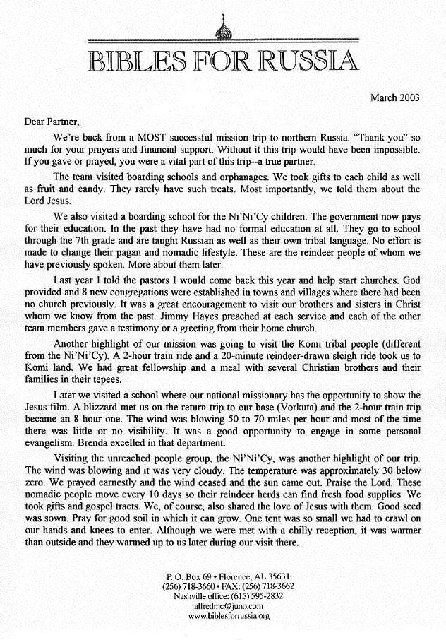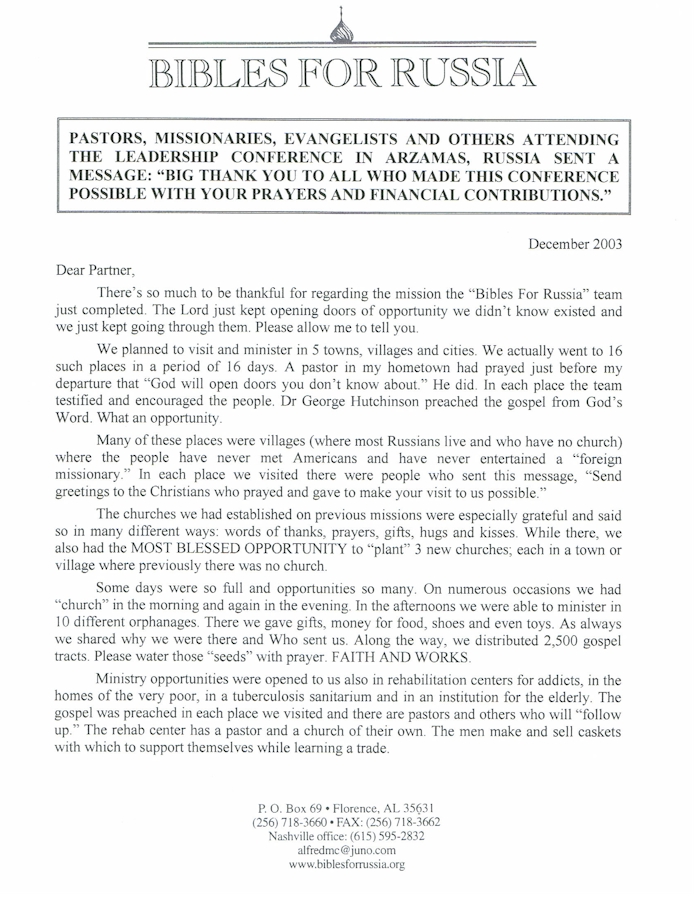 info@biblesforrussia.org Bibles For Russia · P O Box 69 · Florence, AL 35631 office: 256-718-3660 · fax: 256-718-3662 |